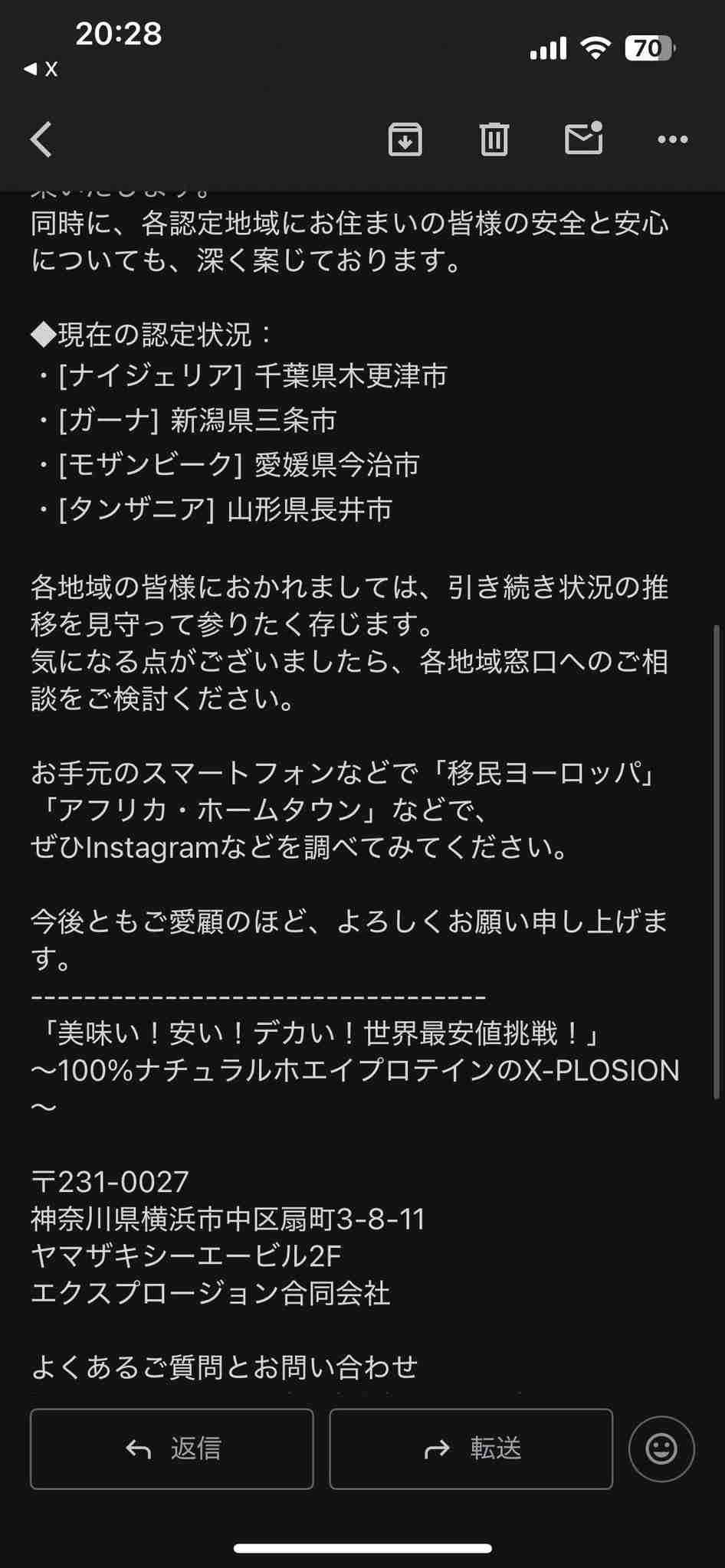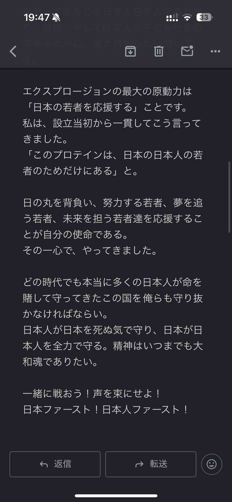【悲報】プロテイン屋のX-PLOSION「選挙は日本ファースト」「アフリカホームタウンの問題」など怪文書メルマガを送り付けてくる [159091185]