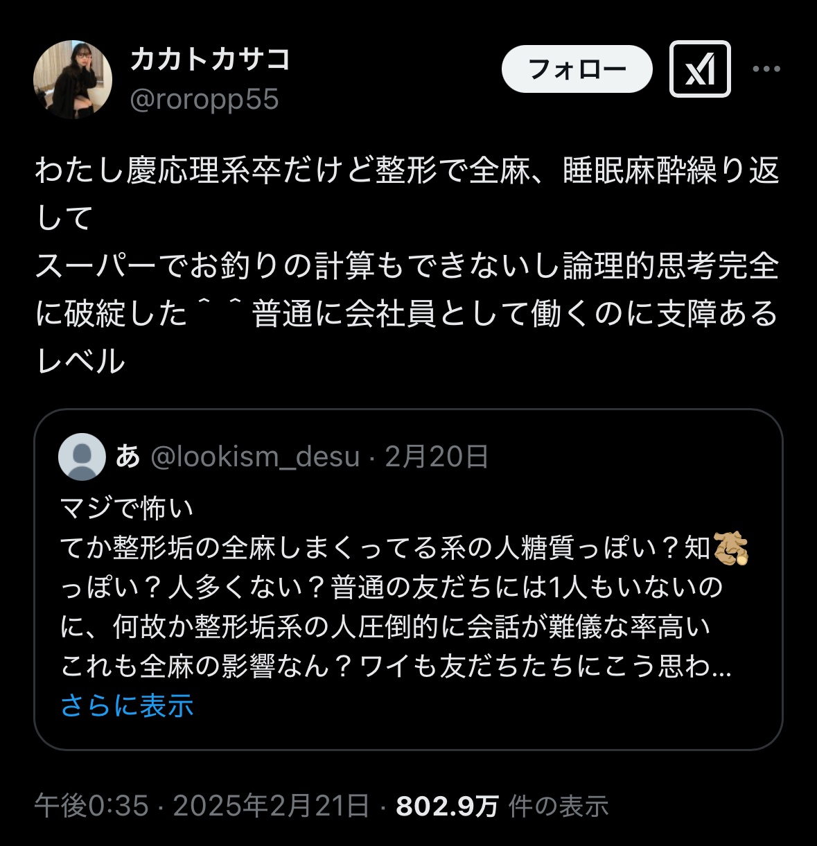 SNSにおける「女の整形界隈」は男で例えると「共同親権界隈」だからな