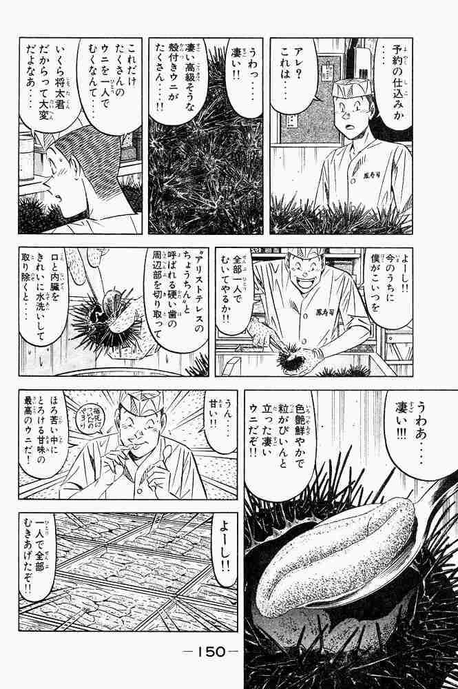 確か兄弟子が滅茶苦茶キレるんだけど主人公が「僕はこのウニで貴方より美味しいウニ寿司を作れますよ」って言って勝負して