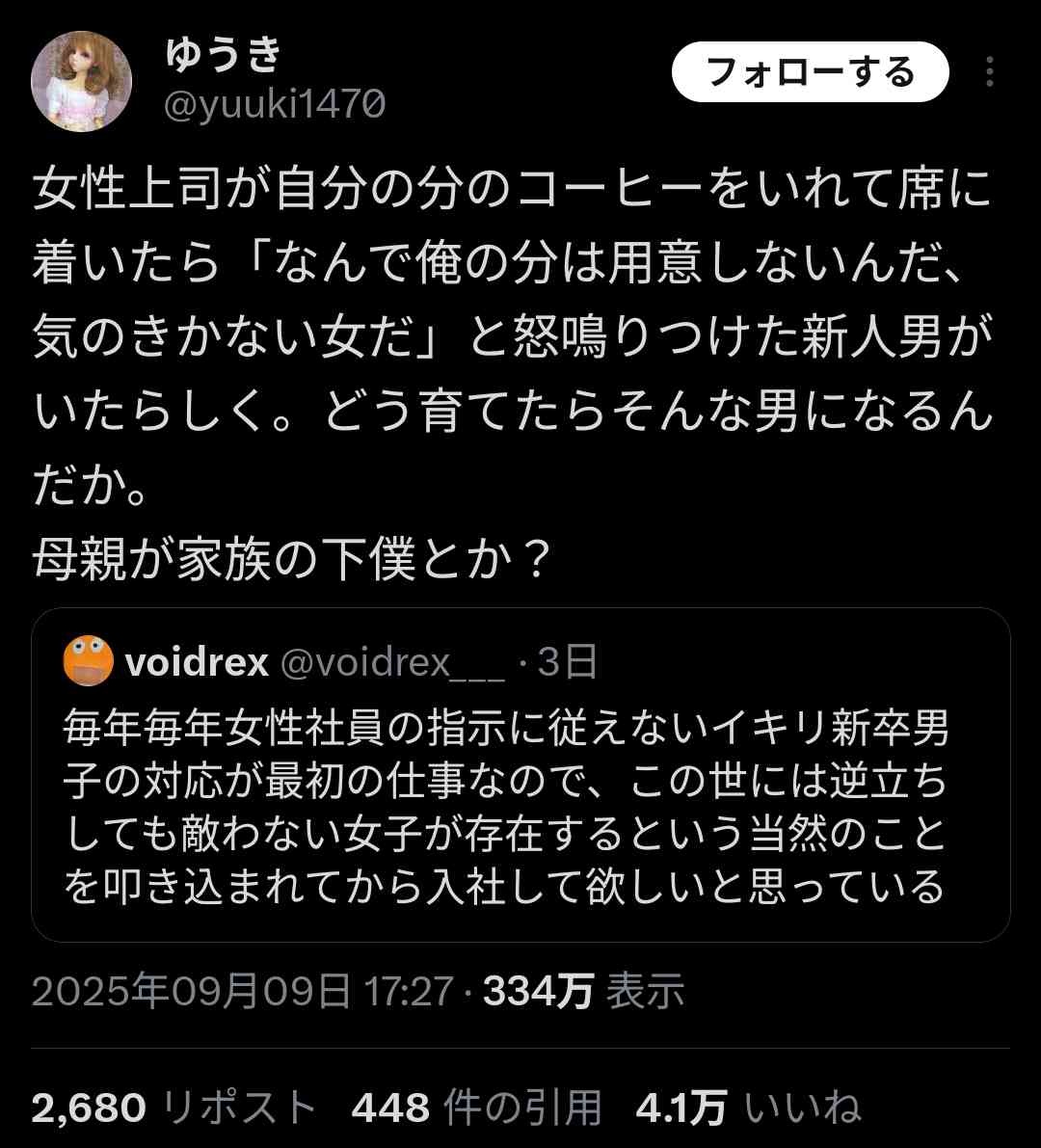 どうせプロフにミソジニーはどうのこうの書いてるご婦人でしょ