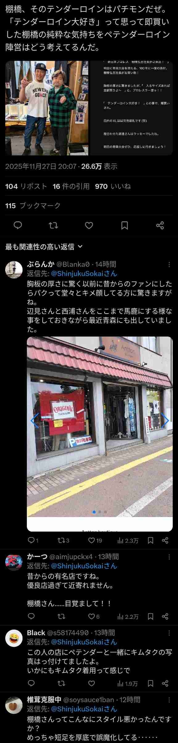 X,インスタ、スレッズ界隈で往年のテンダーロインファンが、現行物はすべて偽物だと発狂してる件