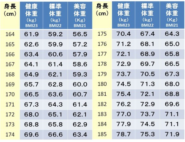 BMI20が美容体重やけど男はこれに+1くらいちゃう