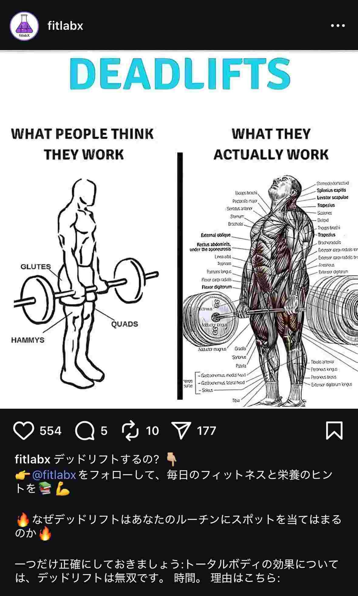 デッドリフトやってない奴はマジで損してると思うわ。全身鍛えられるのに勿体ないよな。