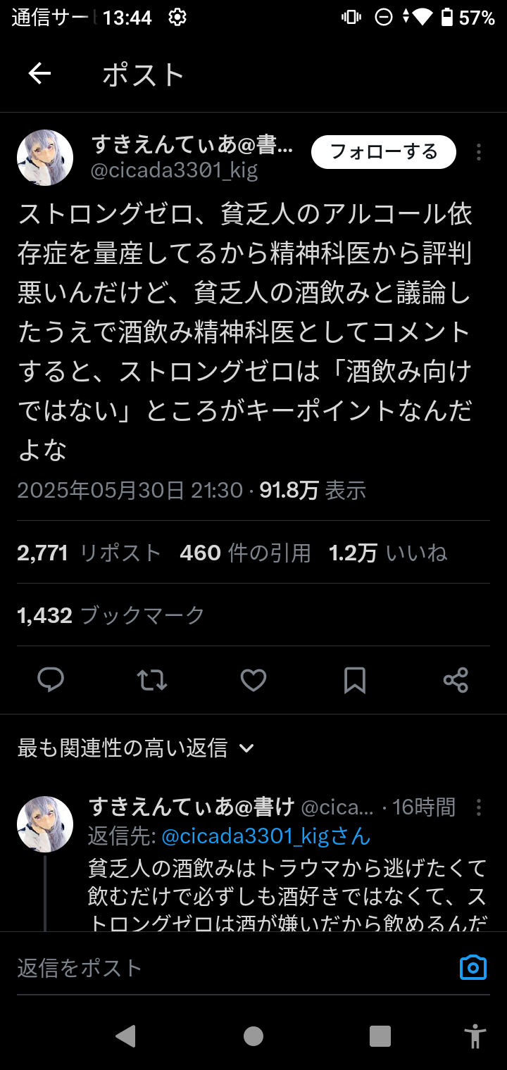 精神科医「ストロングゼロ、貧乏人のアルコール依存症を量産してるから評判悪い」