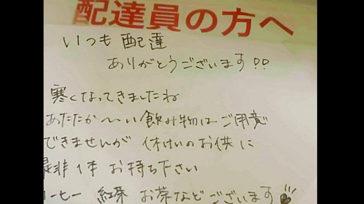 配達員が気遣いに感動「涙いいっすか」 客からの “差し入れとメッセージ”に大反響「日本人も捨てたもんじゃない」「裏がありそうで怖い」