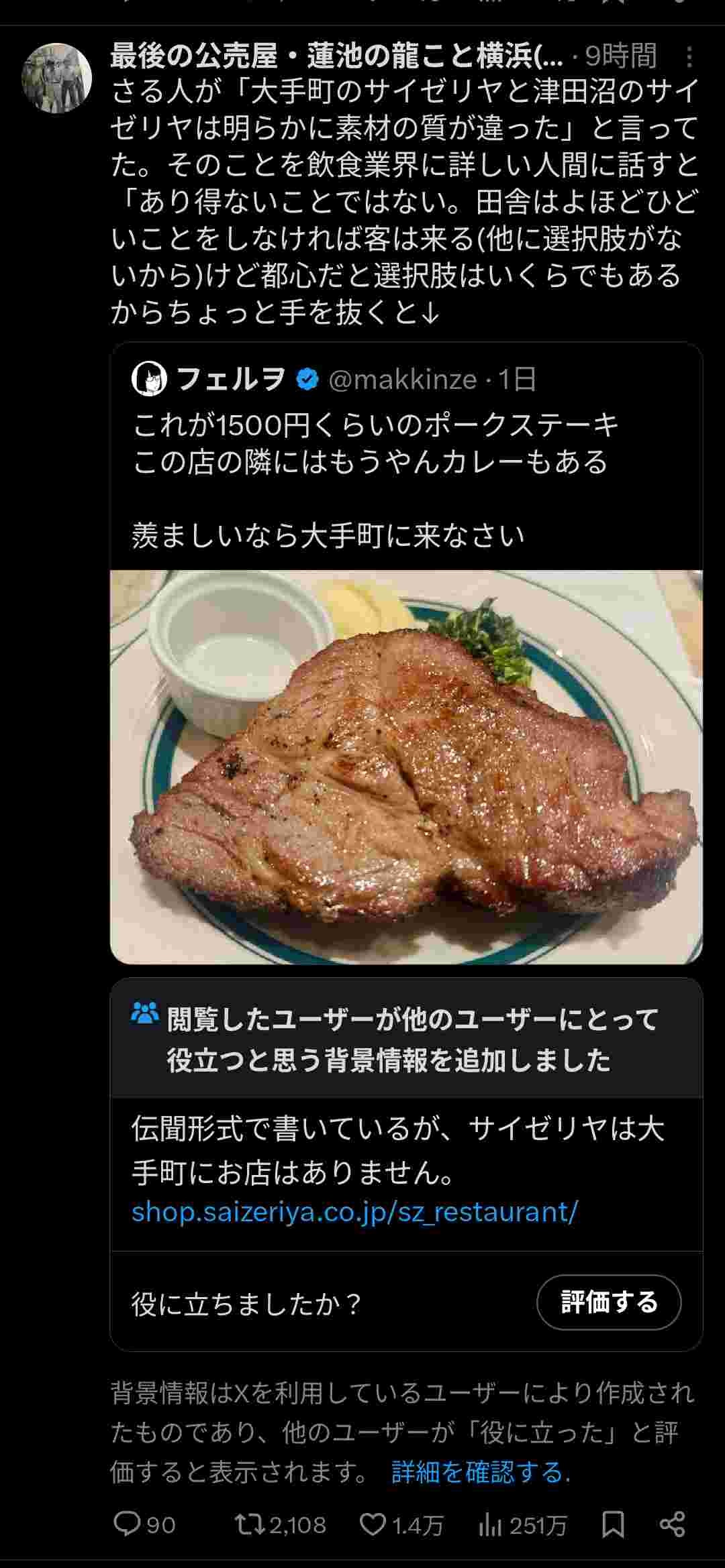 都会のほうが固定費高いから、メニューが同じ価格なら都会のほうが原価ケチりそうだけど。