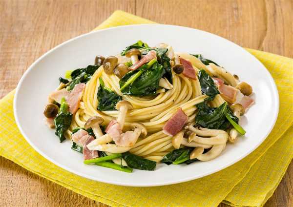 3分茹でてほうれん草とベーコンとオリーブオイルと塩胡椒でいいのにな