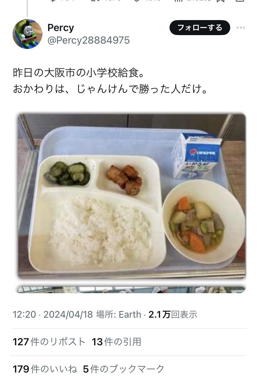 輸入が止まってない日本の給食
