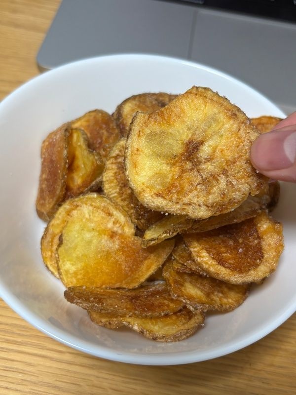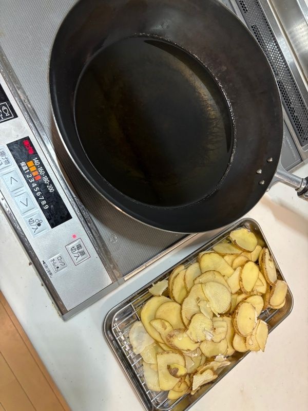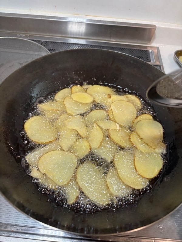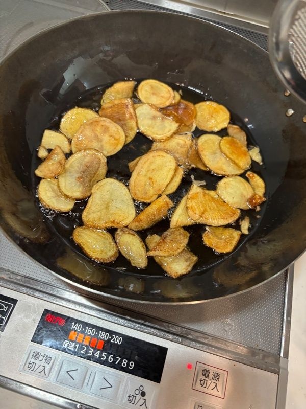 もうちょっと薄切りにして揚げ短くするべきやな😓