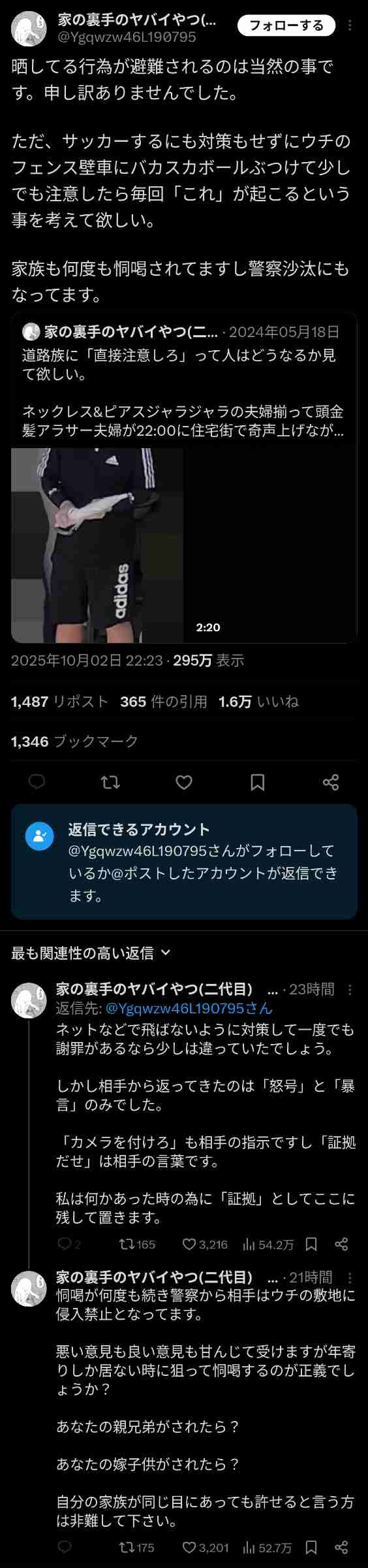 自分の敷地内でサッカーしてるくらいいいじゃん神経質な隣人だな
