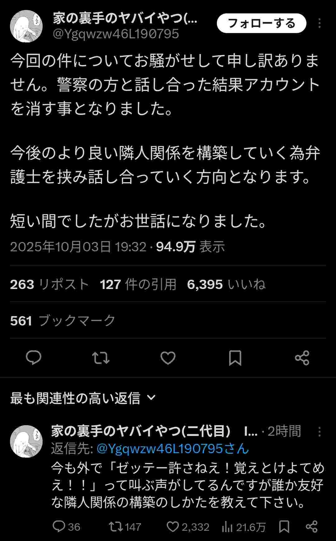 隣人がヤバそうな奴って分かってるならおれのら喧嘩せずに我慢しておくな