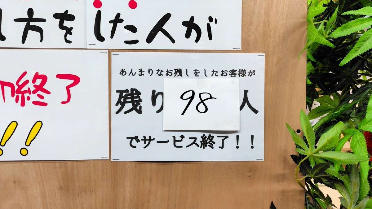 その日の総客数と残さなかった人をカウントして店内どこからでも見える場所に数字出しといて割合が一定以上だったら明日も無料にしますってやった方がいいと思うよ