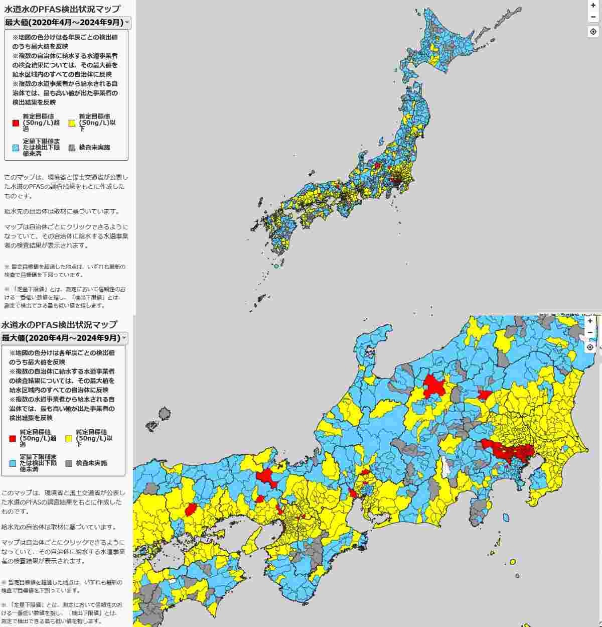 食品安全委員会(PFASワーキンググループ)はPFASのリスク評価を行い、食べものや飲みものから体に取り込んでも健康への影響がない耐容一日摂取量を、PFOS、PFOAそれぞれ20ナノグラム(体重1キロあたり/日)と決めた。欧米と比べて64から666倍大きい値だった。