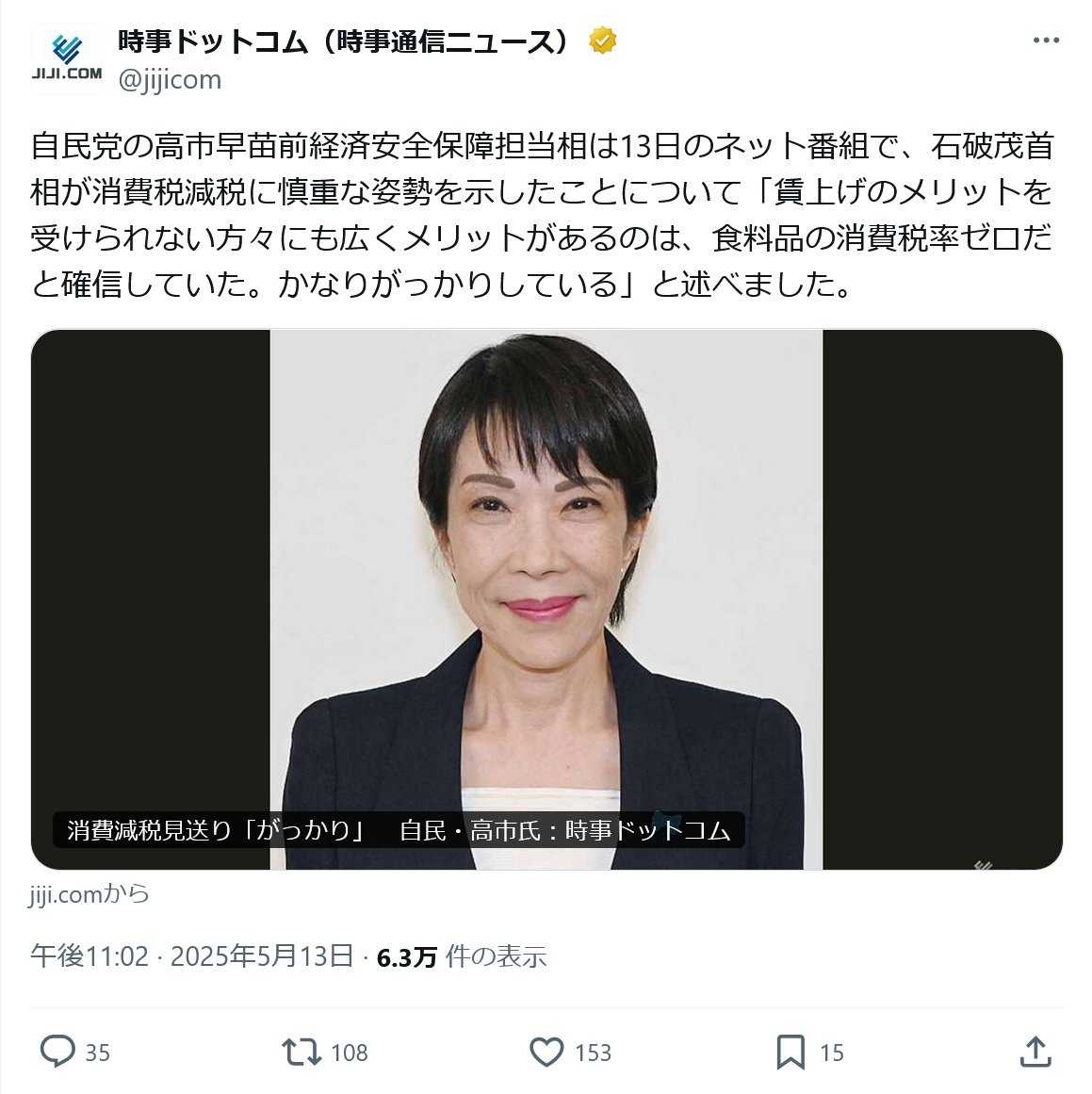 これには高市早苗さんもガッカリ