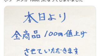 嫌儲 老舗二郎系ラーメン屋「今日から¥100値上げ。 小ラーメン¥1000でお願い🥺」