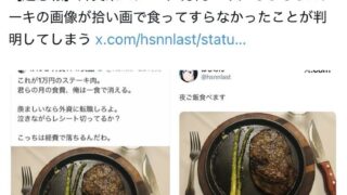 嫌儲 外資系ステーキニキ、拾い画像だったと判明