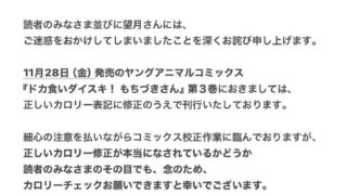 嫌儲 「ドカ食いダイスキ! もちづきさん」誤表記に関するお詫び