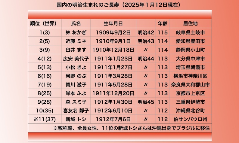 明治生まれ国内10人 出生時に新選組永倉新八存命