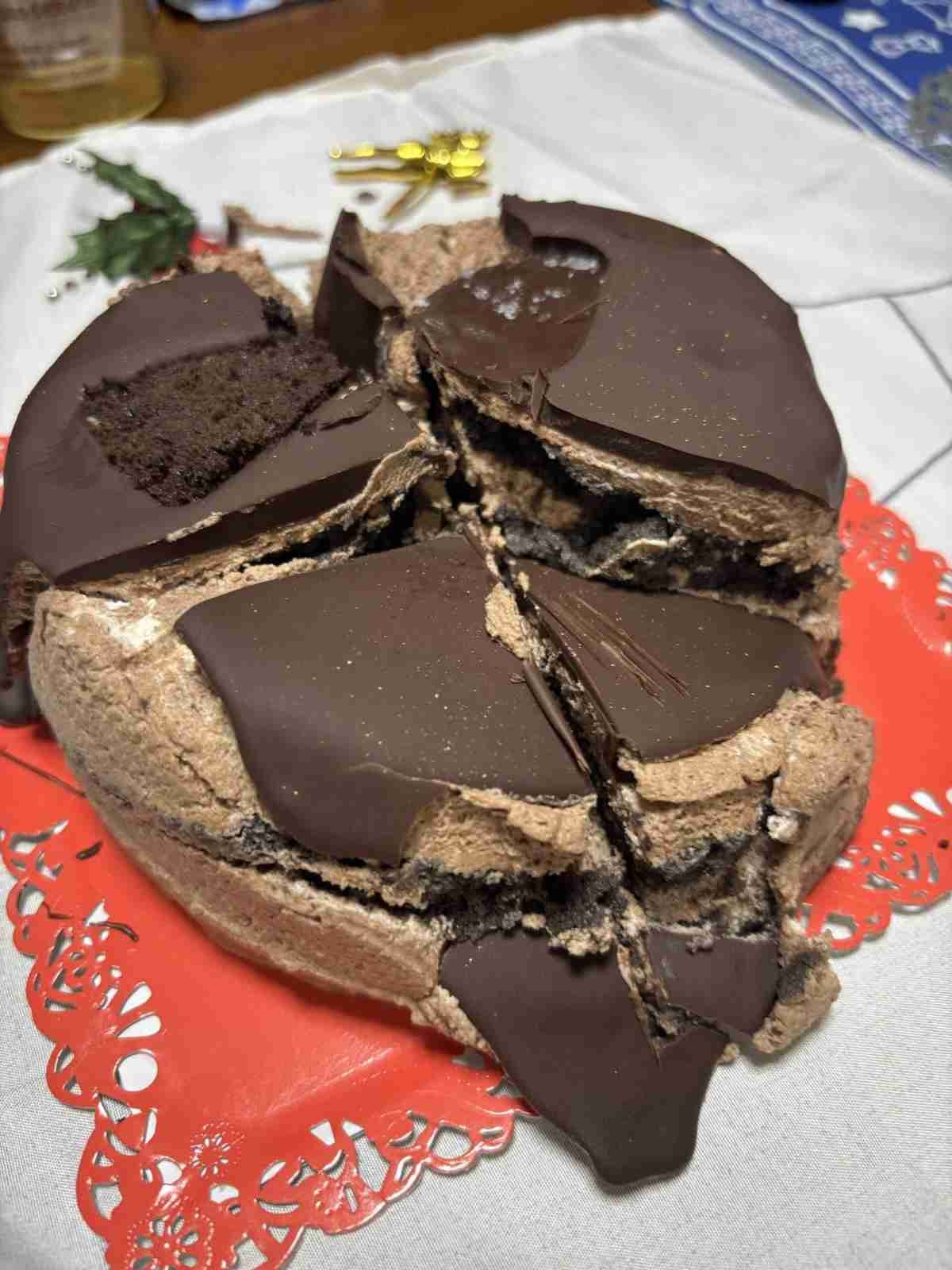 表面のチョコがカチカチだから切ったら潰れるんだろうね
