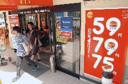 日本マクドナルドは5日、全国の約3900店舗でハンバーガーを80円から59円に値下げし、これまでで最も安い値段で販売を始めた。チーズバーガーとフランクバーガーもそれぞれ120円から79円、150円から75円に値下げしており、同社は消費者の反応を見ながら値下げ商品を3カ月ごとに入れ替える方針だ。