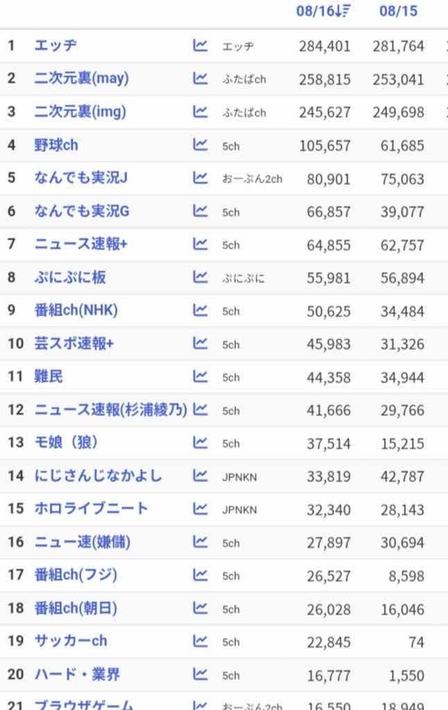 今日もおよそ80000で嫌儲が一番書き込み多いけどな