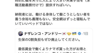 嫌儲 ナザレンコ「生活保護そのものを廃止すべき。納税者は働ける身体して働こうとしない者を養う理由も義務もない」