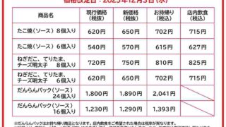 嫌儲 🐙【たこやき】銀だこ12/3から値上げ