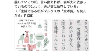 嫌儲 マルクス主義フェミ「労働者が自分の妻を食べさせているという概念は間違っている。妻が労働者が働きに出られるように扶養している」