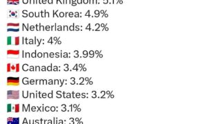 嫌儲 【画像】主要国の食料品インフレ率ランキングがこちら→