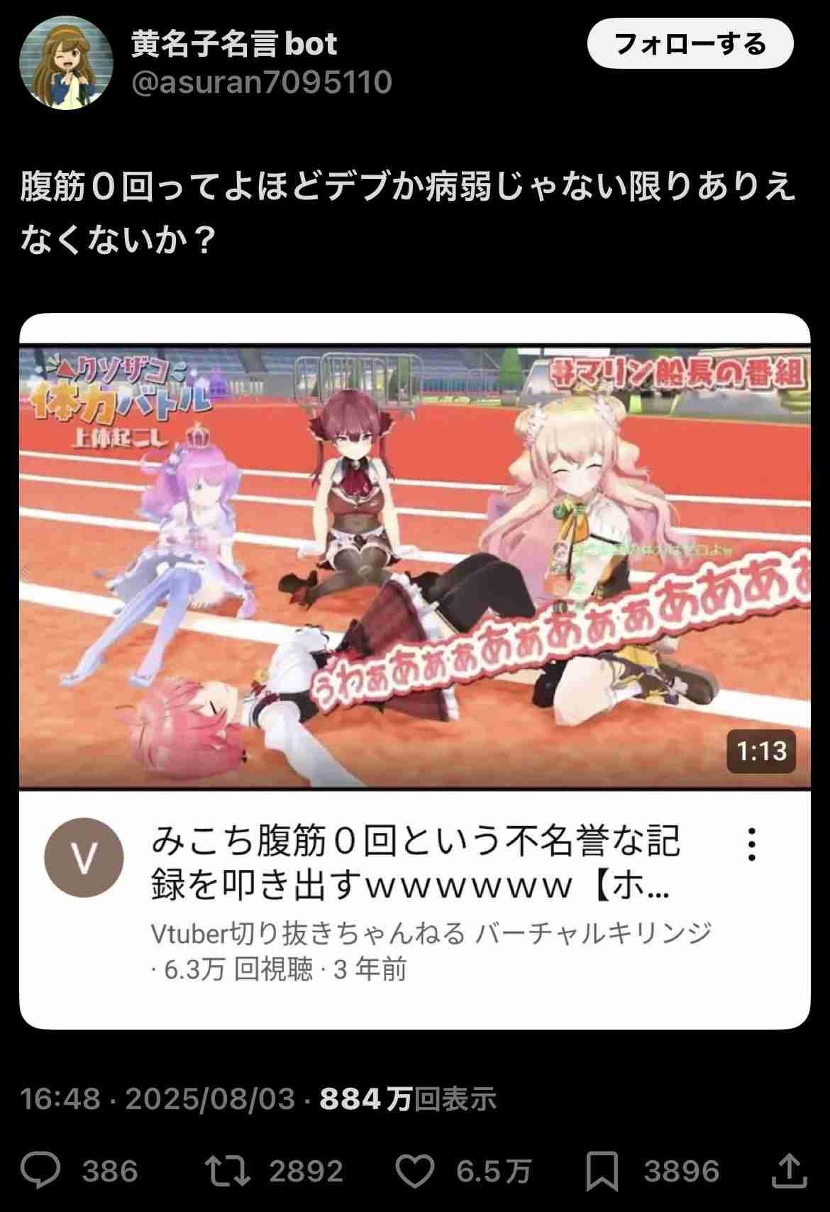 懸垂0ならまだしも腹筋0は何かしら身体に問題あるやろ