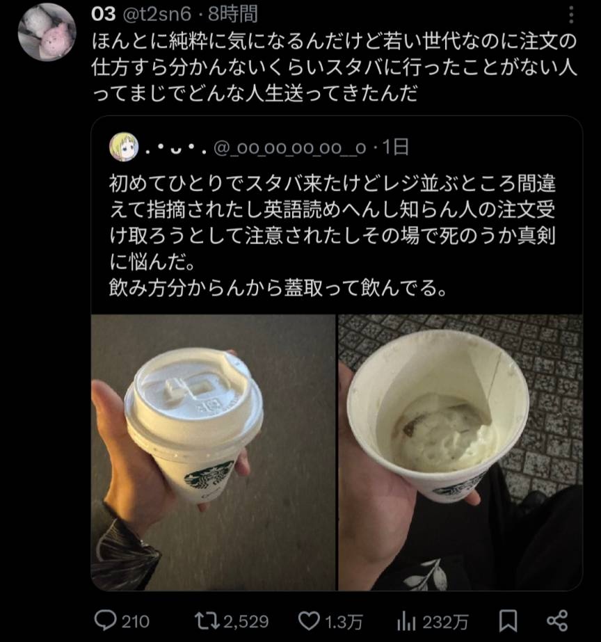スタバで注文の仕方が分からんっていうのはそういうネタだと思ってたんだがマジで注文の仕方分からん奴いるの?他の店ではどうしたんだ?